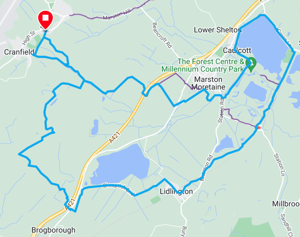 The route: After taking advantage of the twisty descent through rectory wood follow Sustrans 51 to the forest centre. Leave the park at Millbrook station and use the permissive path along the railway. At the road go left, over the crossing and then right on the tarmac path to Lidlington. Beyond Sheeptick End resist all the muddy fields until just before the main road a bridle path cuts towards an electricity substation.
