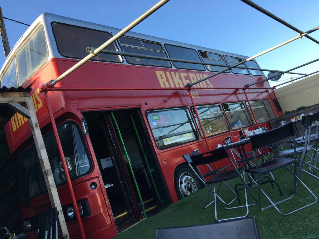 About the bus: Originally from London the bus is an unusual design which interestingly attracts bus enthusiasts as well as cyclists. Its previous owners include Cambridge City Council before it ended service as a school bus. Grant was out riding one day when he spotted his future partner languishing in a compound, impulsively he made the owner an offer and the rest is history.