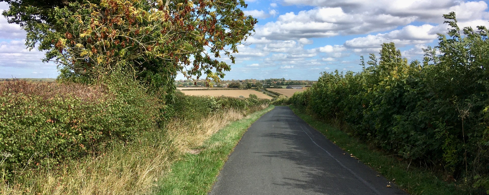 The hedge lined roads loop around to Hanslope were we being a long gradual downhill towards home. When the wind is from the North you will REALLY enjoy this but take care as there are sharp bends to negotiate and the descent ends at at tricky junction.