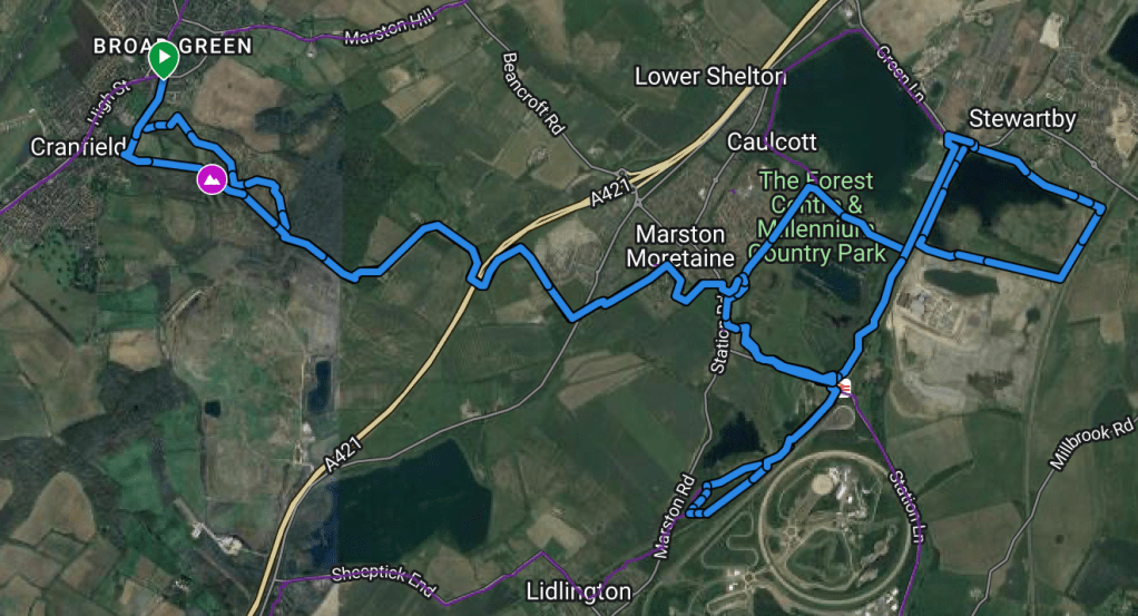 Route: The gravel descent down to the thrift is unlikely to be busy in the rain, so makes for a fun start. Then after hopping over the now infamous A421 join the wide tracks at the Marston Vale forest centre. I like the “canal path” heading in, especially in autumn it somehow feels a bit out there even though it isn’t. You can pick any route around the lakes, but the gpx follows the obvious one, and at the time of creation a bridge over Elstow brook was shut off following flood damage.