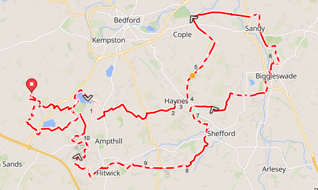 This is a big ride. It reaches some nice sectors that are beyond the scope of the normal 2 hours or so from Cranfield. Taking a direct line to get to the further reaches is still worthwhile, may reduce the time needed, but would still need good legs.