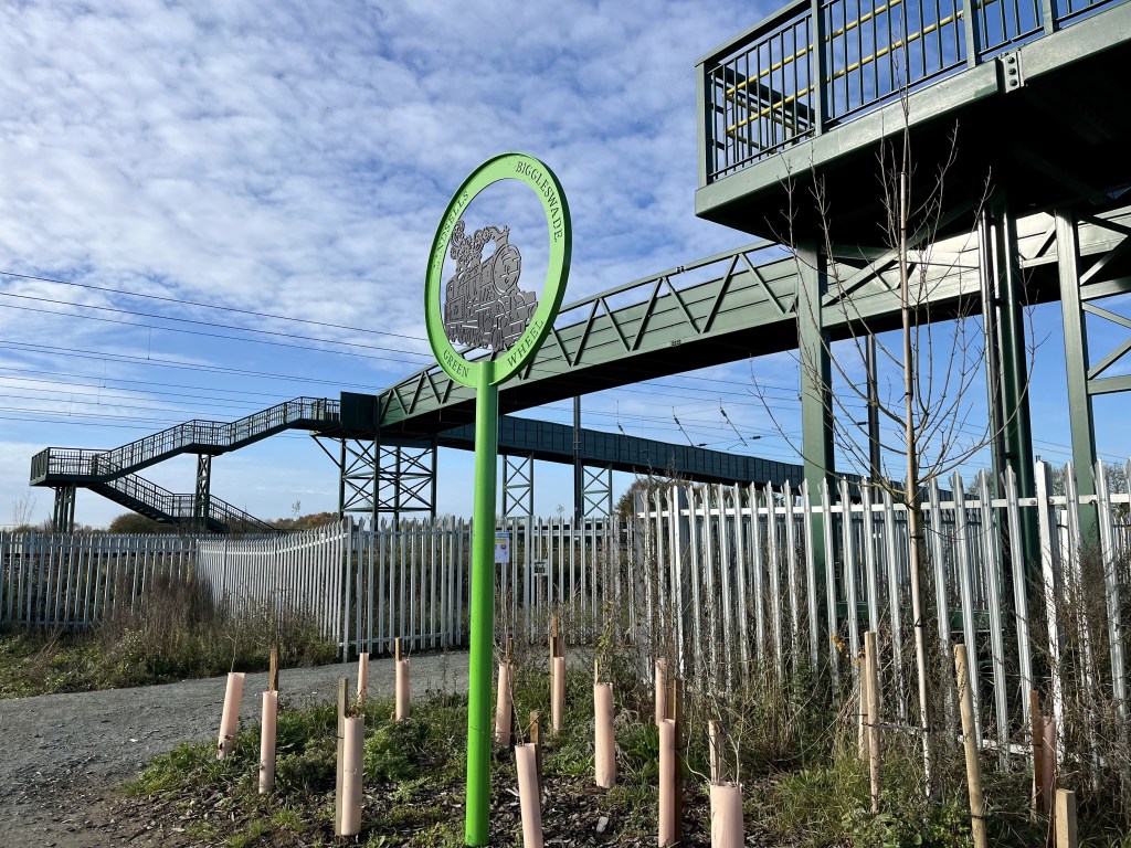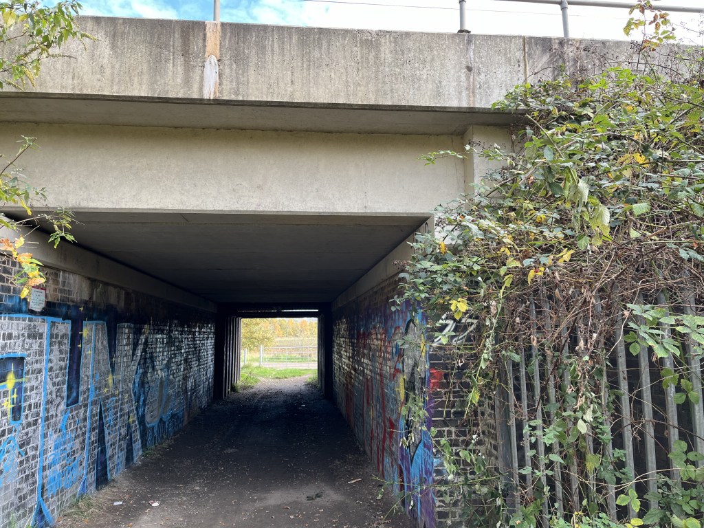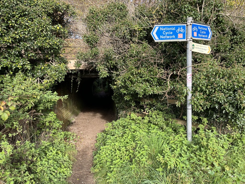 - The railway crossing is now closed, go right to the new bridge.