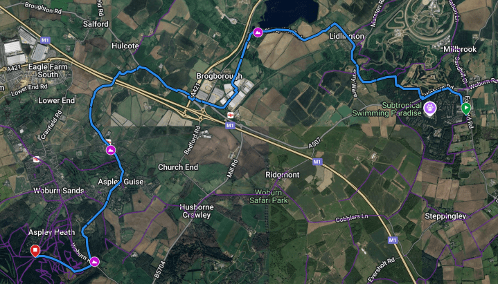 It’s not far to drive but to ride your bike there is easy. This is the simplest route, mainly off road and good for all seasons.