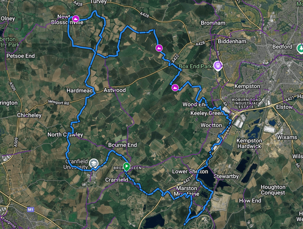 Route: To start enjoy a bit of Cranfield’s first rate gravel and from Lidlington crossing go all the way along the vale in an almost straight line. The first bumps are short lived, cutting through the trees in Berry wood.